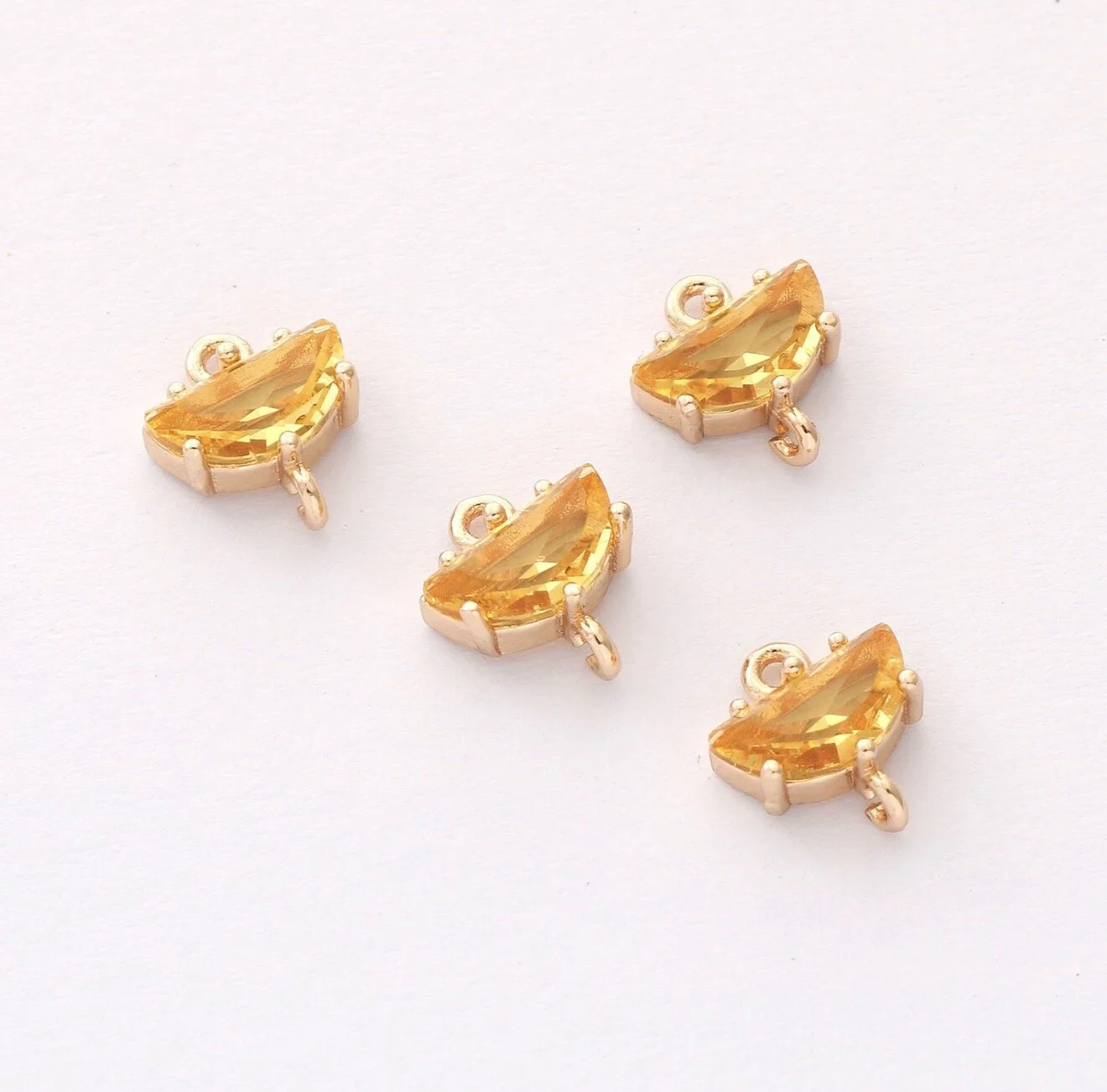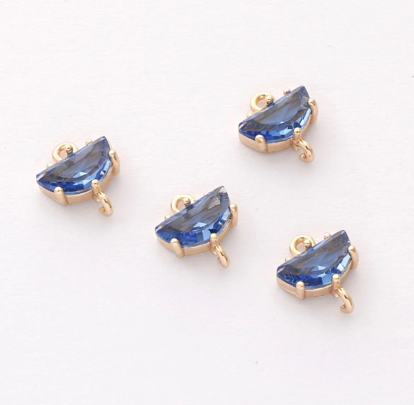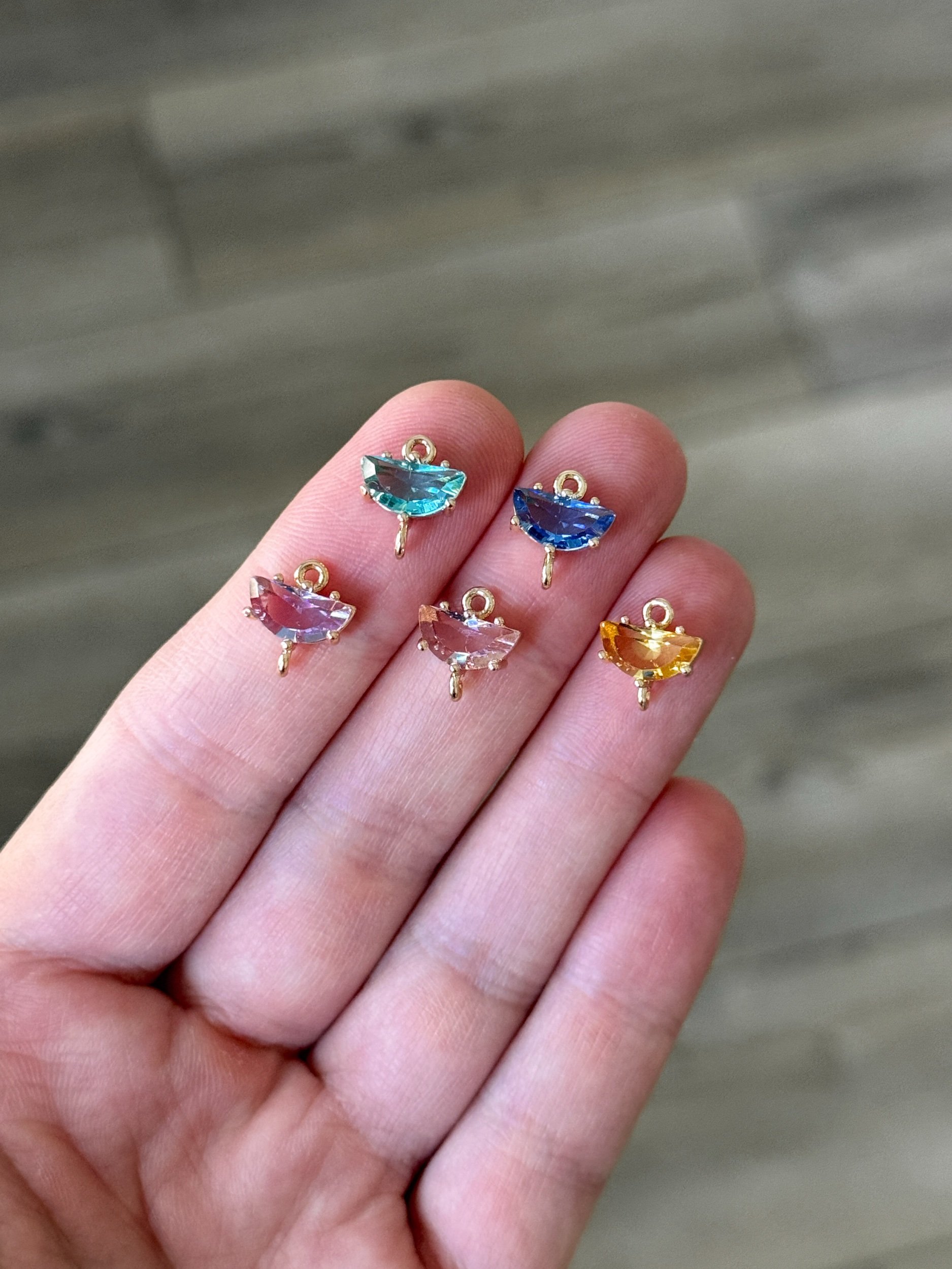 All Brass Charms › Half Circle Colored Glass Connector (2 PCS) Half Circle Colored Glass Connector (2 PCS) $2.94 Color: Navy Blue Turquoise Purple Pink Yellow Get notified by email when this product is in stock. Add To Cart Added!